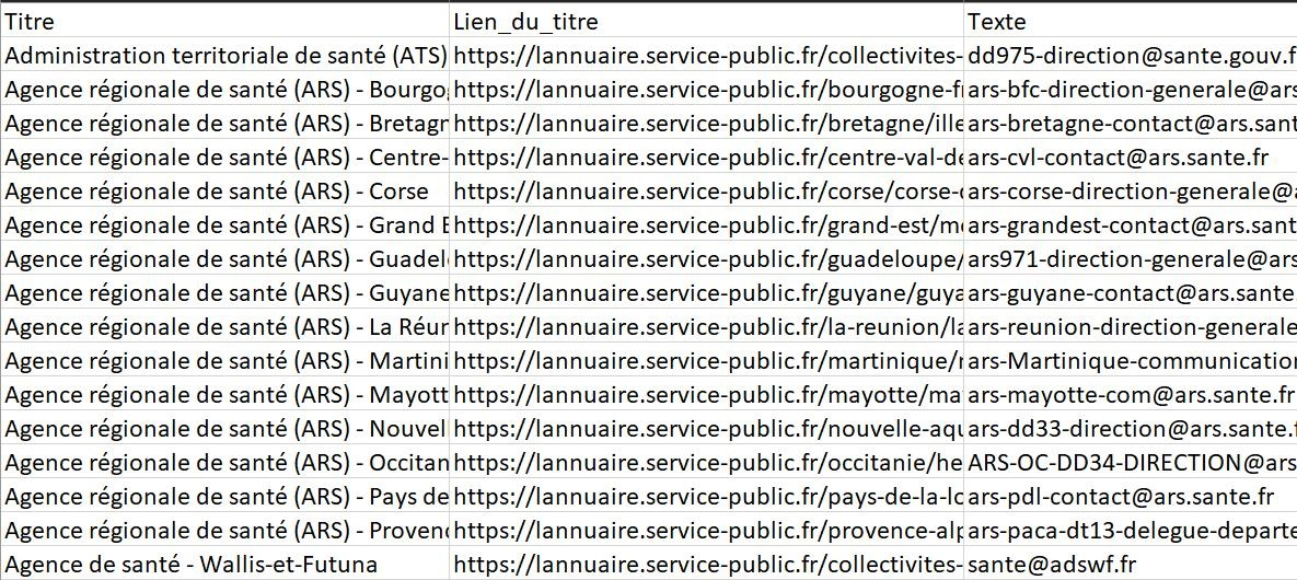 Étape 1 – copier l’url dont les données vous intéressent et la coller dans Octoparse avant de cliquer sur “Démarrer”. Je prends Agence régionale de santé (ARS) sur ce lien pour exemple.